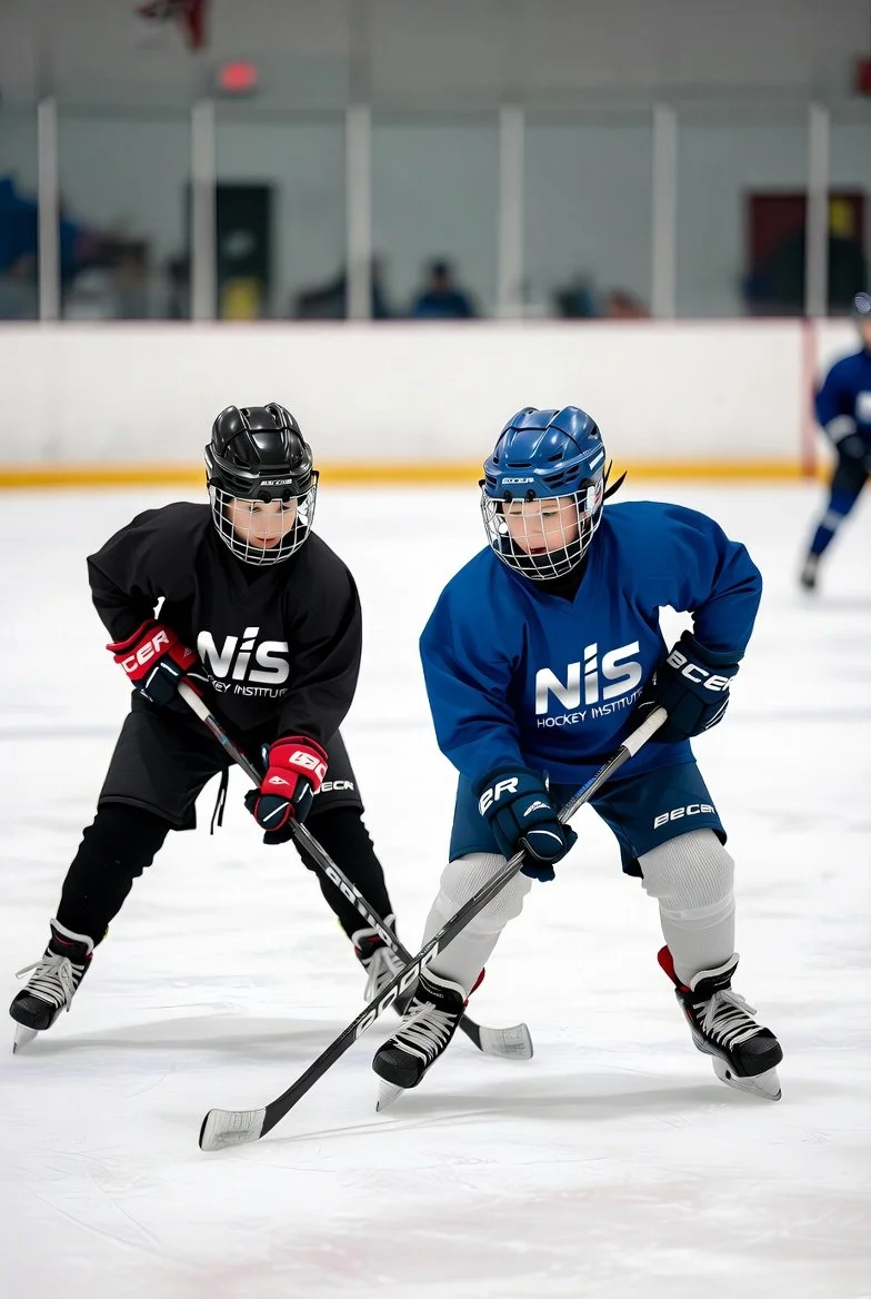 - High-intensity on-ice sessions: Power skating, edge work, puck control, shooting, 1v1 battles, small-area games